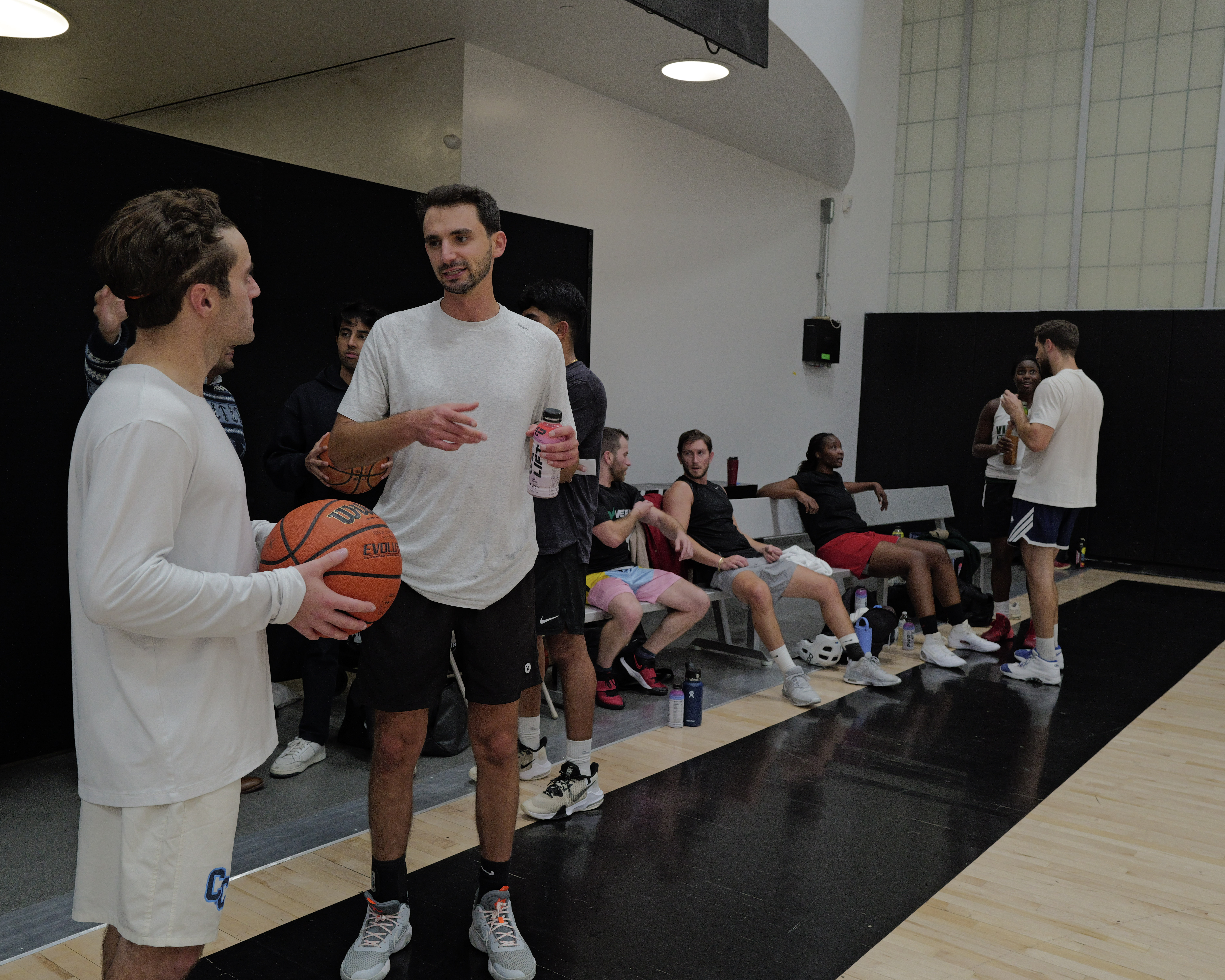 Just show up ready to run. Games are 4v4 half-court, lasts about two hours, and teams are organized on the day. Wear sneakers you can hoop in and bring water — some runs include product samples from brand partners too.